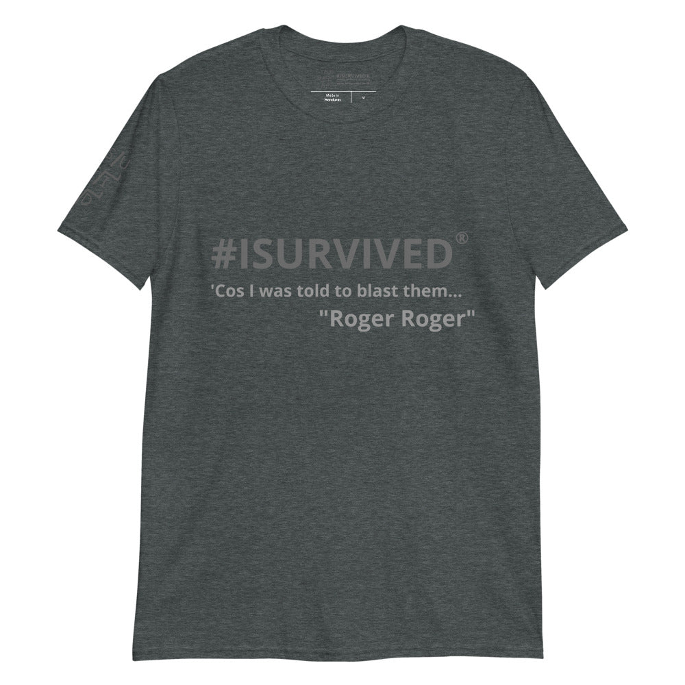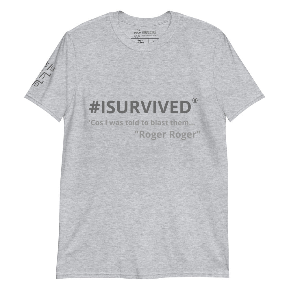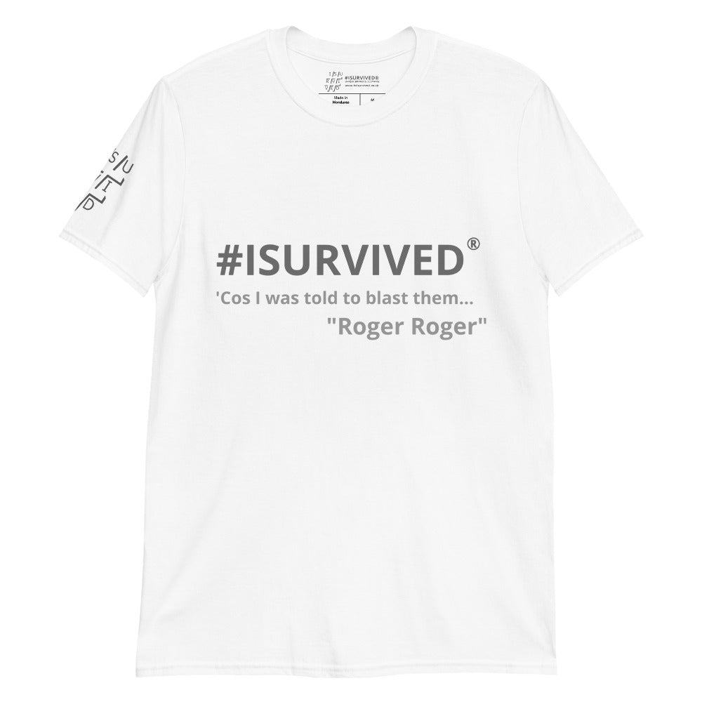 For the Sci-Fi fans, have a laugh and tell people what you survived with your noticeable t-shirt with '#ISURVIVED Cos I was told to blast them - Roger Roger'.